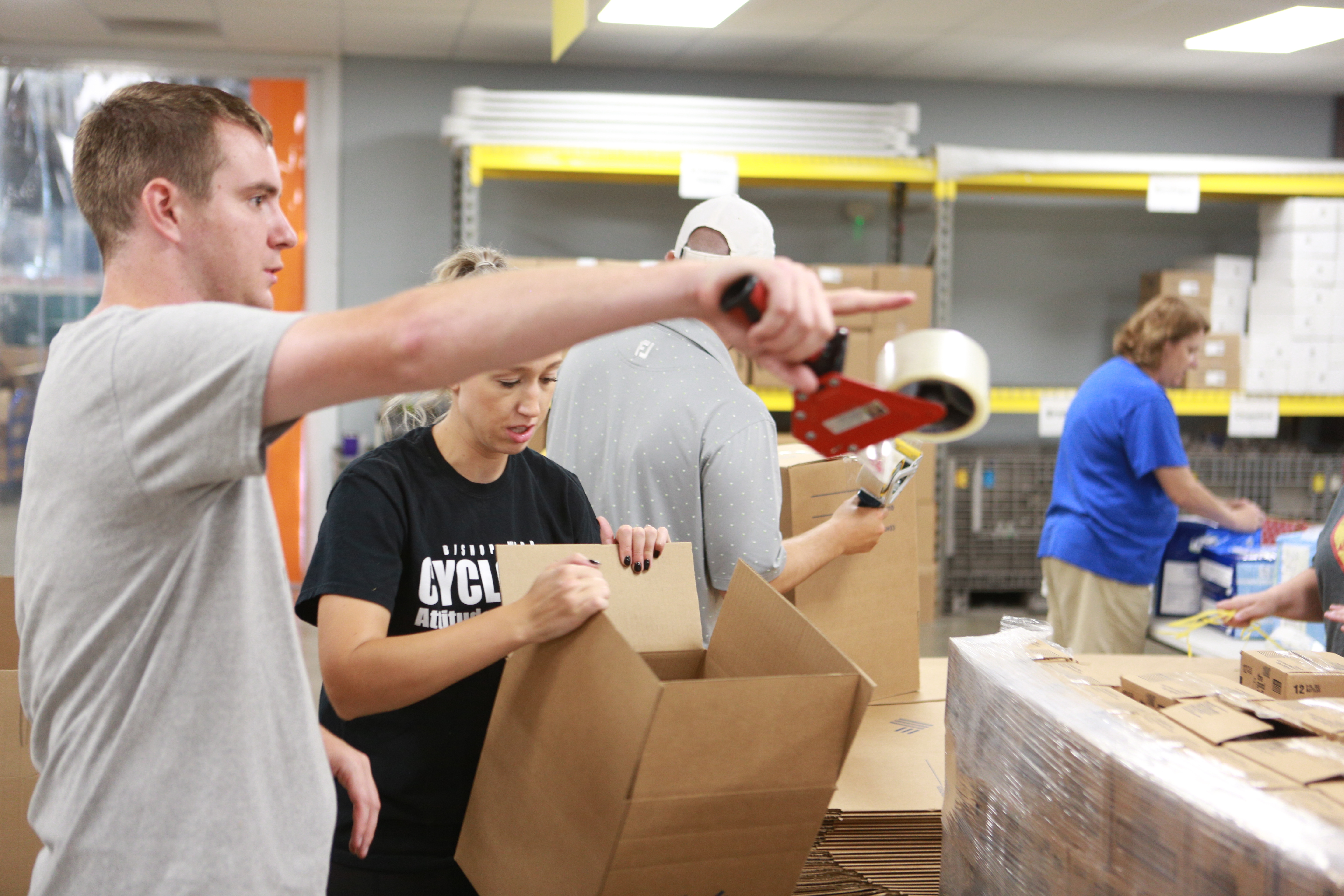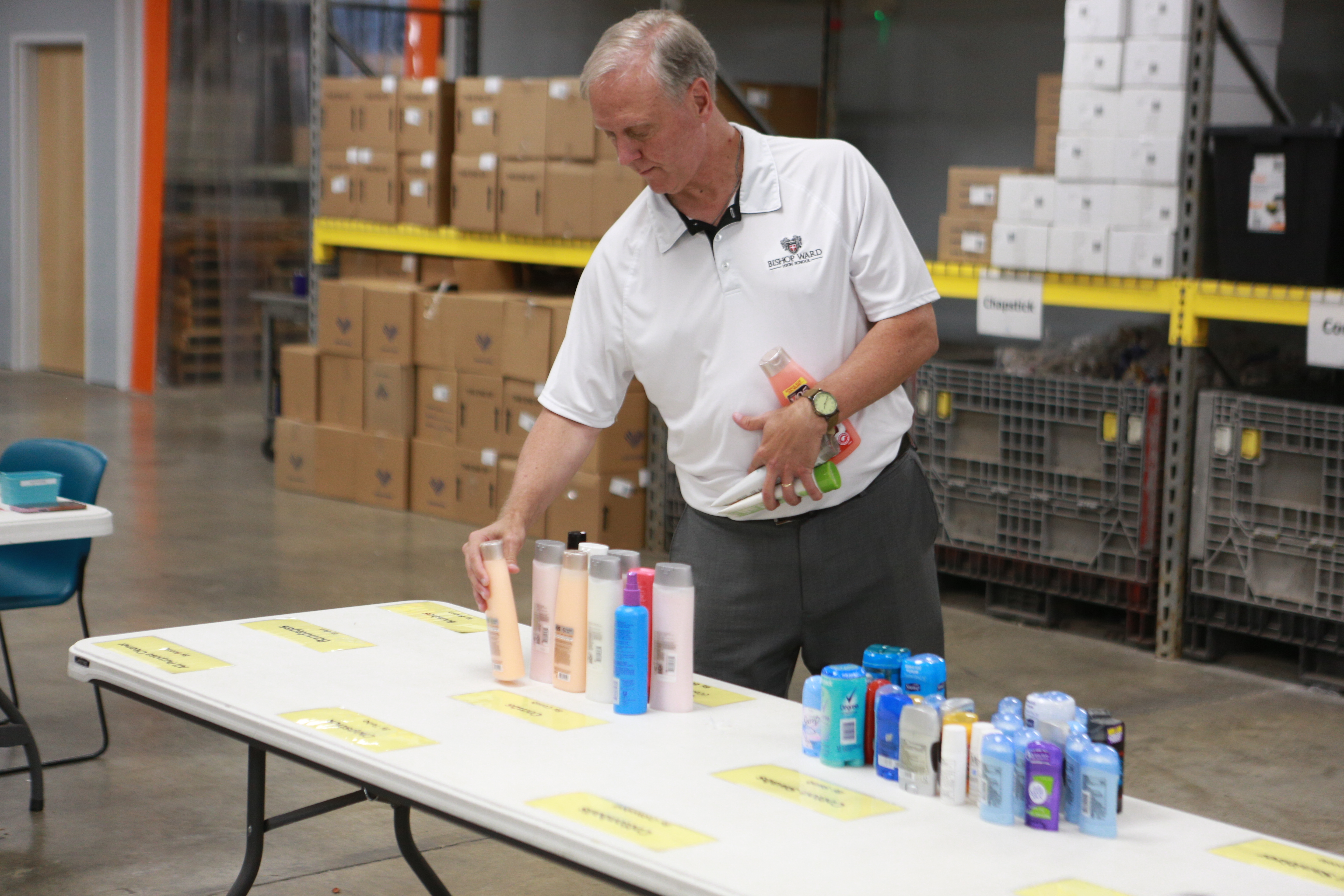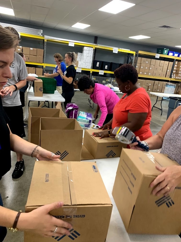 Faculty and staff visited Giving the Basics on Thursday, August 8th to volunteer their time to help members of our Kansas City community. Giving the Basics helps those who have been going without hygiene products. Many may now be able to get the job that changes their life, seniors will continue to thrive in their latter years, and students will be able go to school clean and fresh; ready to learn and raise their hand with pride.